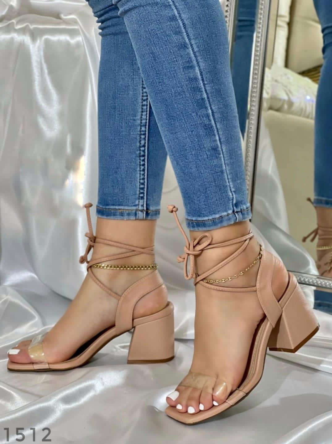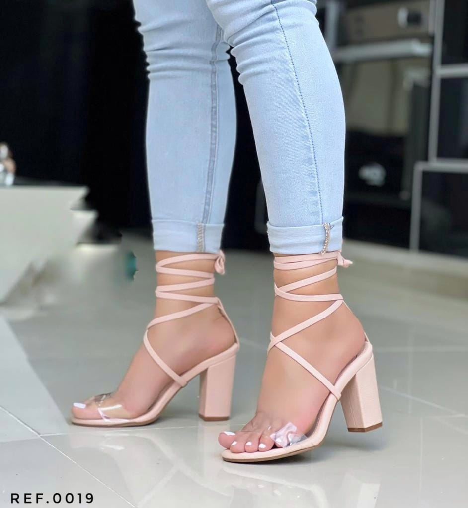 Hermosas sandalias con detalle transparente, amarre romano.
